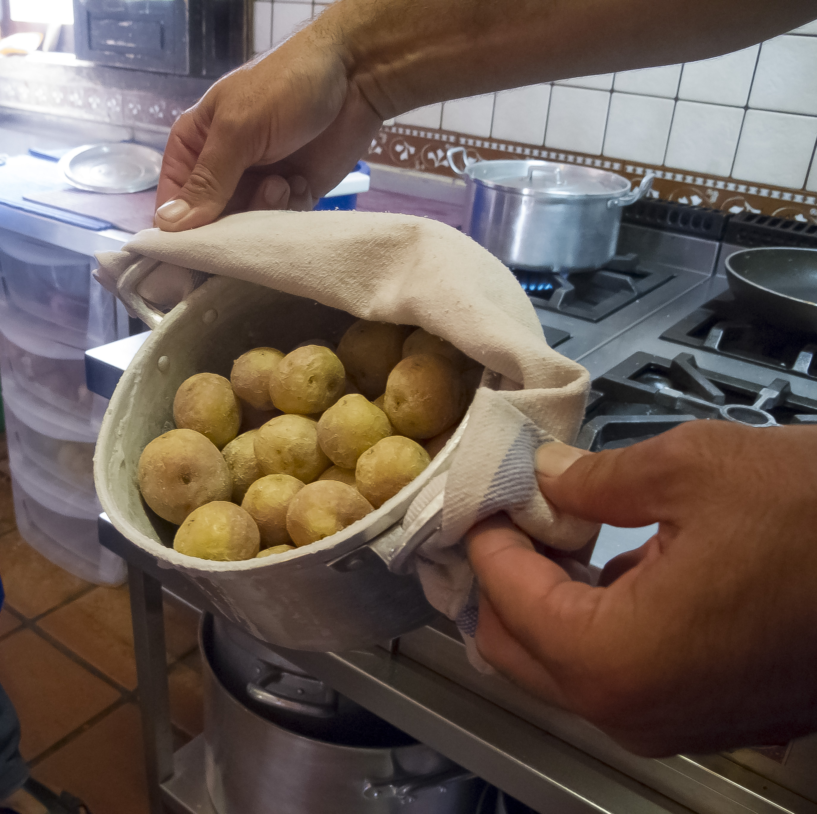 I’m making Mojo, a classic Tenerife sauce, under the watchful eye of the chef and also, I’m guessing, his mother. Her clucking and tutting is interspersed with bursts of terse Spanish and I mutter ‘si’ and ‘bueno’ through teeth clenched with effort. I have absolutely no idea what she’s saying but whatever it is I think the safest thing to do is agree.