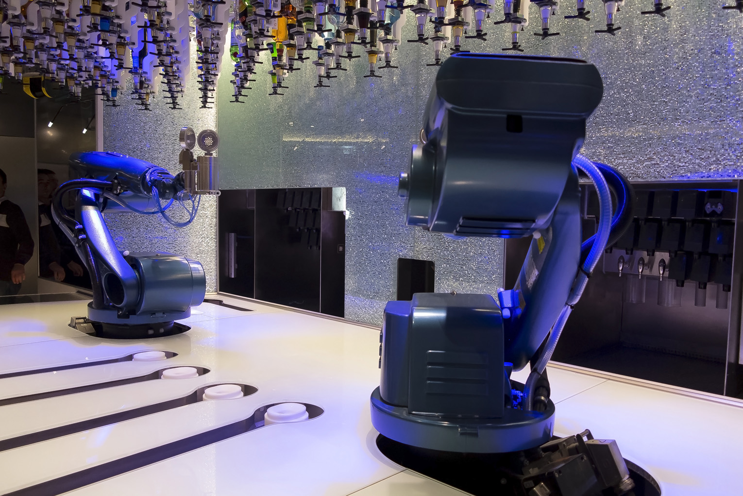 Onboard are the first dodgems at sea, the first trapeze, the first skydive simulator – Ripcord by iFLY – the first Jamie’s Italian, the North Star – a stomach fluttering glass pod that swings out and over the ship to give you a helicopter view – and the Bionic Bar where two hyperactive robots log your order and then go into blurred motion at the optics, the ice dispenser and the mixer taps before finally giving it all a good shake and sliding your refreshing beverage towards you.