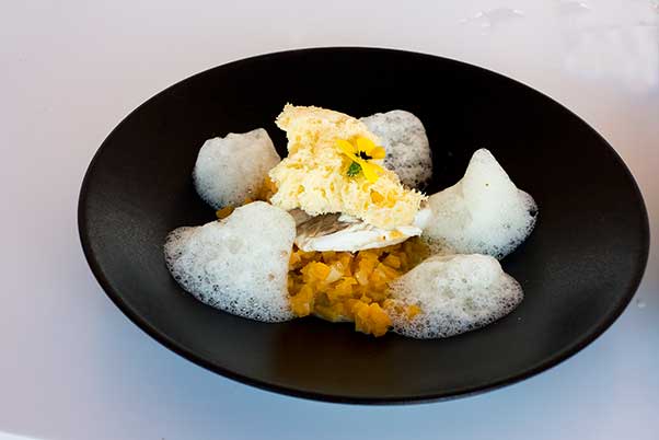 Every supplier he uses, and all are local, is listed on the menu, an indication of how importantly he rates suppliers’ contribution to the restaurant. Great ingredients are crucial to him and you know the shellfish is fresh because it’s splashing about in a large tank at the rear of the kitchen.