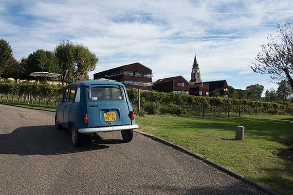 With the suitcases back in the Renault 4L, the staff treated us just as if it had been a Mercedes their friendliness totally genuine, we rolled back down the hill and out of Bordeaux. We should perhaps have come in an Aston Martin DB5 , but nonetheless we’d still had a very good adventure.