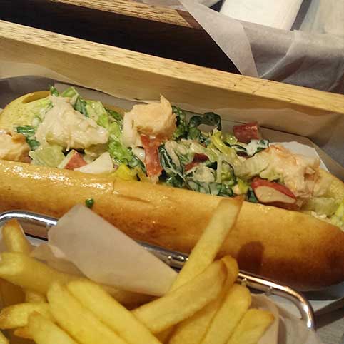 The roll is pretty good, not stingy on the lobster which is a bit bouncy but sweet. It’s a sweet roll as well though, which again is on trend but don’t get the point of sweet on sweet. Celery and lettuce are in there and it was supposed to come ‘slathered in lemony mayo, tartare and Marie Rose sauce’, but if so the definition of slathered is ‘a small squirt’ – I’d have liked a lot more tart dressing to liven up the lobster. It rather needed it.