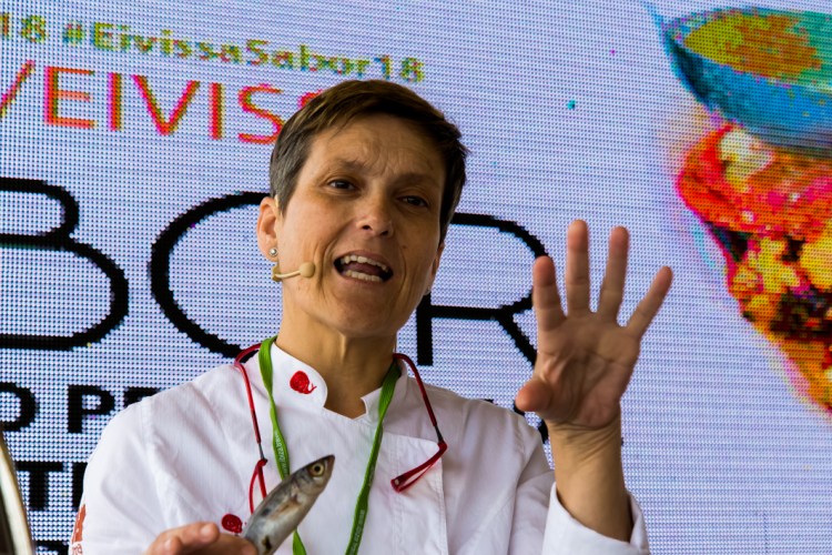 It’s very much focused on sustainability and has a focus too on female chefs. Sílvia Anglada of restaurant Es Tast de na Sílvia, in Ciutadella, Minorca runs her restaurant on strict eco lines and demonstrates one of her signature dishes, a kind of cheese doughnut with a beetroot jam