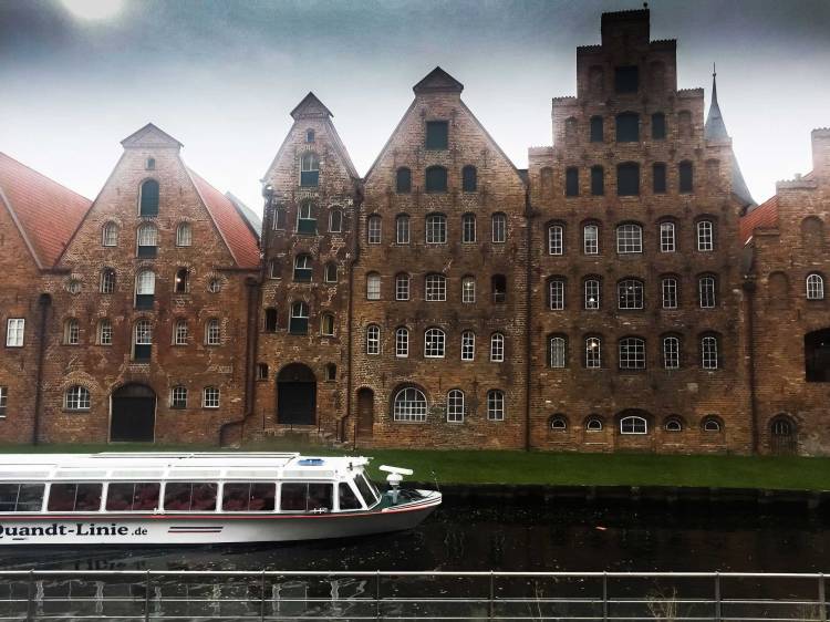 Back in town, my bag of marzipan purchases now safely stashed at the hotel, I wander through the hugely impressive Holstentor, one of the two remaining medieval gateways to the town. Here the cobbled, winding streets are lined with steeply gabled brick-built houses, and here are the closely grouped stunning and soaring churches whose green copper spires are visible from all directions.