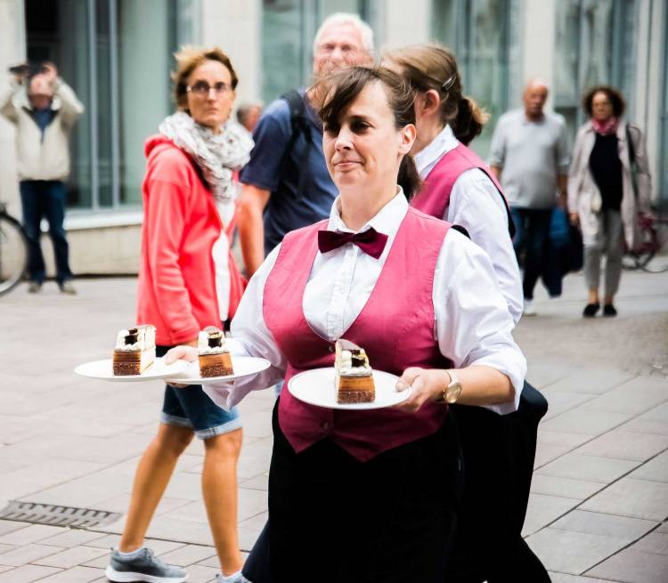‘Does it get busy in here at Christmas?” I ask indistinctly between mouthfuls of cake. My neighbour pauses in the task of putting away his own massive Torte Niederegger to reply, ‘well, put it this way, last year I came here to meet a client and it literally took me over half an hour to get through the crowds and get upstairs!’