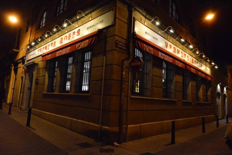 Encouraged by several glasses, each with a few local olives bobbing about inside, I bob and weave to Restaurant Vermuts Rofes.