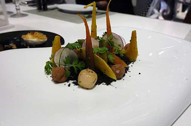 These pittas are fat and round and delicious and prove perfect for loading up with the creamy sheep’s milk labneh with pork and a smattering of chick peas. Superb, as is the smoked aubergine puree with roasted garlic, this time scooped up with perfect crispy tranches of crackling. A dusting of pomegranate seeds add colour, but do get caught in my teeth.