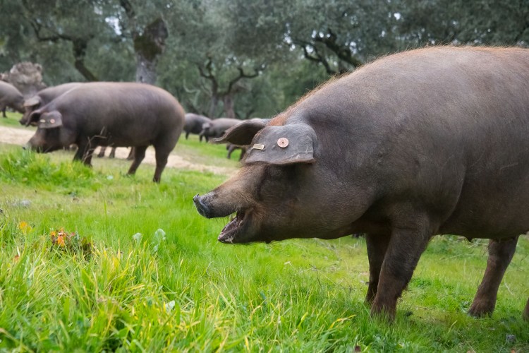 So its Pluma De Cerdo Iberico Glaseada, Glazed Iberian pork with potatoes for me, a cut of pork that is the Holy Grail of pork in Spain. Pluma, or Pen, is a triangular shaped cut with only one available from each pig and often weighing no more than 100g. It comes from the acorn-fed black pigs that give us Iberian Jamon and so, when you add all this up, it’s no wonder it’s a lot more expensive than fillet steak as well as a lot more tasty.